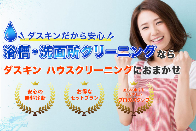 洗面ボウルの黒ずみや鏡のくすみなど、普段のおそうじではなかなか落とし切れないガンコな汚れを専用の洗剤やスポンジですっきりキレイに取り除きます。